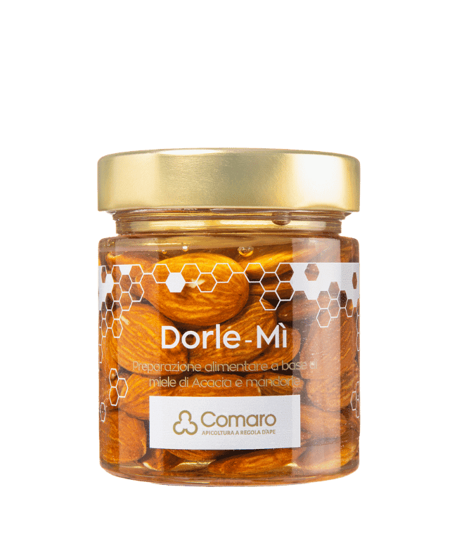 Deliziose mandorle immerse in un pregiato miele, quello di acacia. La trasparenza del miele permette di vedere le mandorle all’interno del vasetto, cosa che vi farà sicuramente venire l’acquolina in bocca al solo pensiero di gustarle! Il sapore delicato della mandorla si avvolge a quello dell’acacia che ha un retrogusto di confetto, l’abbinata perfetta.